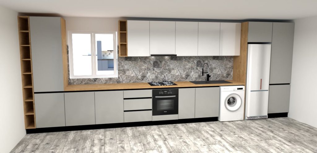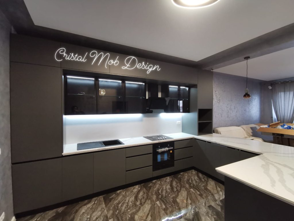 Recenzie Client 2 Mobilier Bucătărie FocșaniLa Cristal Mob Design, specializarea noastră în mobilă pe comandă înseamnă că fiecare piesă este creată cu o atenție deosebită la detalii, pentru a se potrivi perfect spațiului și stilului dumneavoastră. Ne dedicăm transformării viziunilor dumneavoastră în realitate prin designuri personalizate, care nu doar că îmbunătățesc estetica unui spațiu, ci și funcționalitatea acestuia.