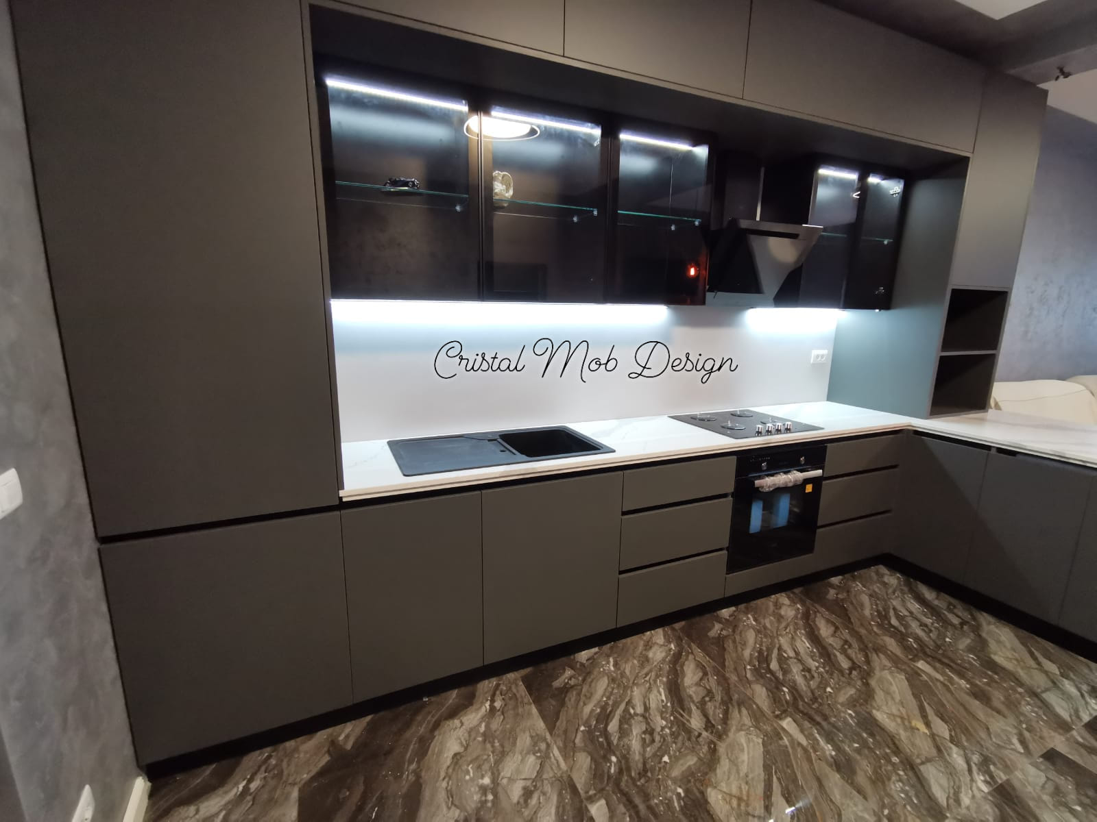 Design-ul modern de la Cristal Mob Design îmbină liniile curate și forme inovatoare, creând un ambient contemporan și elegant.